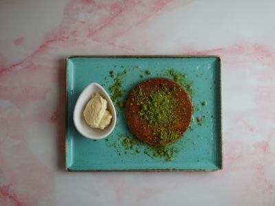 | PISTACHIO Pistachio coated delicious cake. | | £7.50 |